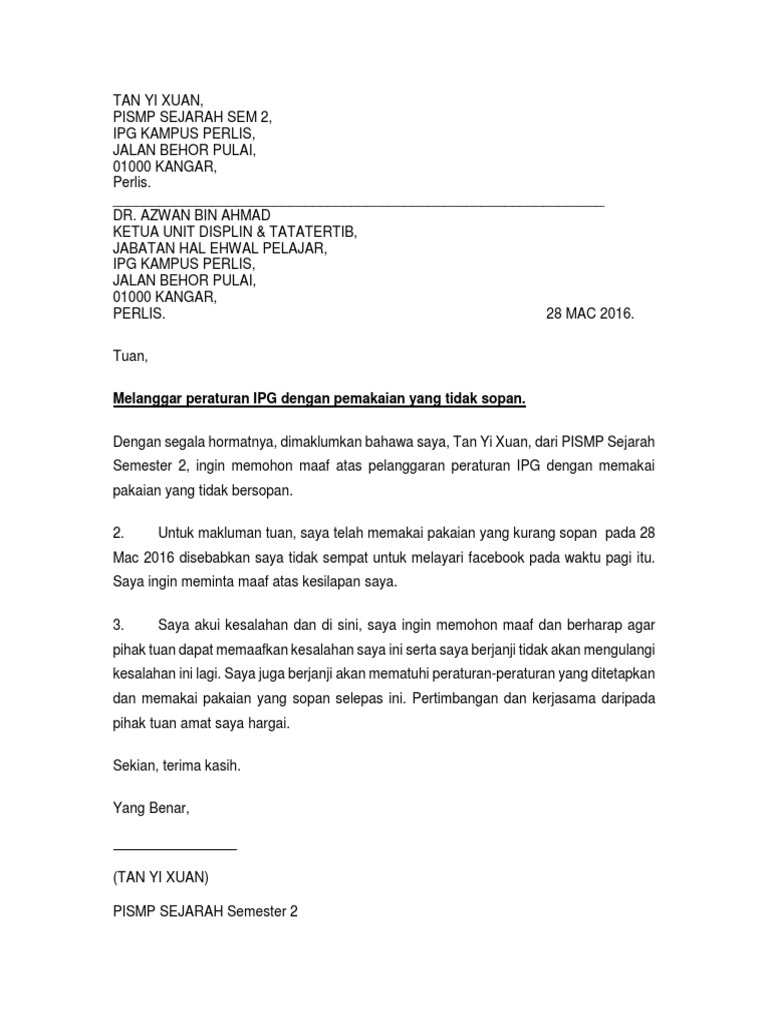 Surat Rasmi Memohon Maaf Atas Salah Laku Rasmi J Otosection